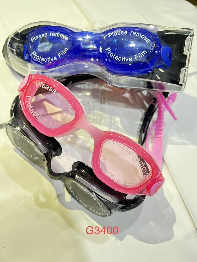 Kính bơi G3400 chống sương mù, dây đeo 100% silicon, có nút tai (1T*8H*9C) TNECHO