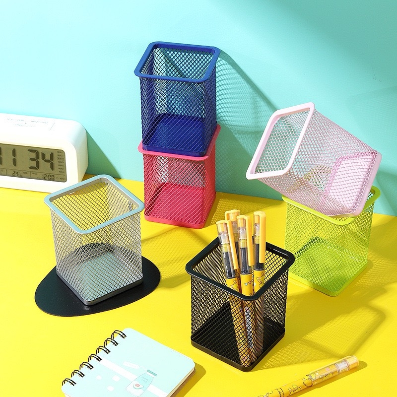 Ly cắm bút sắt vuông lưới 804 - nhiều màu (1T*8H*12C) xám, dương, vàng chanh, hồng